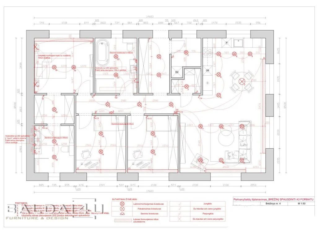 3️⃣ Tik tada – elektros, santechnikos, apšvietimo, pertvarų planai